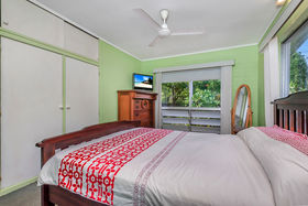 Large double bedrooms with built ins and great tropical louvre ventilation under windows.
